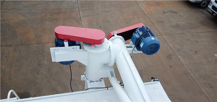 上裝罐體:罐體材質(zhì)采用4mm優(yōu)質(zhì)碳鋼板,整車3條絞龍,由3個5.5KW電機380V外接電源帶動頂部絞龍用液壓控制舉升,可左右旋轉(zhuǎn)180°。罐體內(nèi)分為四個倉,可以獨立控制各分倉卸料順序和速度。(備注:此報價為標配,國產(chǎn)電機,德力西電柜)
