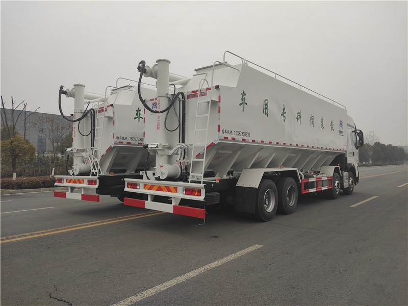 2、散裝飼料在罐體內密封輸送,減少損失,保證質量,避免污染。全自動上料卸料,可連續(xù)作業(yè),大大提高生產效率。人工袋包裝10噸飼料光裝卸就要消耗將近160分鐘的時間,而散裝飼料運輸車只需20分鐘左右裝卸完成10噸飼料。